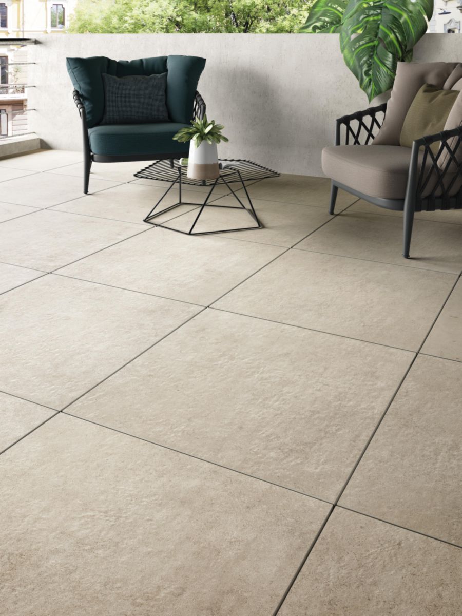 Il est issu d’une gamme de carreaux qui s’inspire de la pierre naturelle.